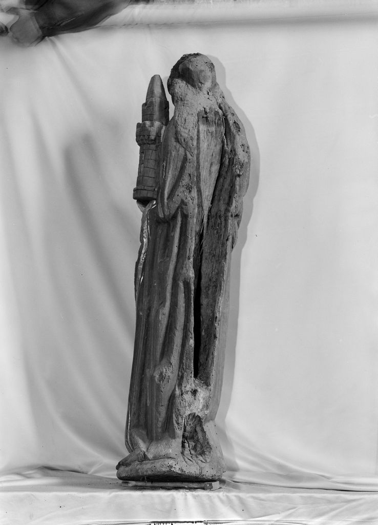 Statue (d'applique, petite nature) : sainte Barbe, chapelle Sainte-Marie-du-Menez-Hom (Plomodiern),