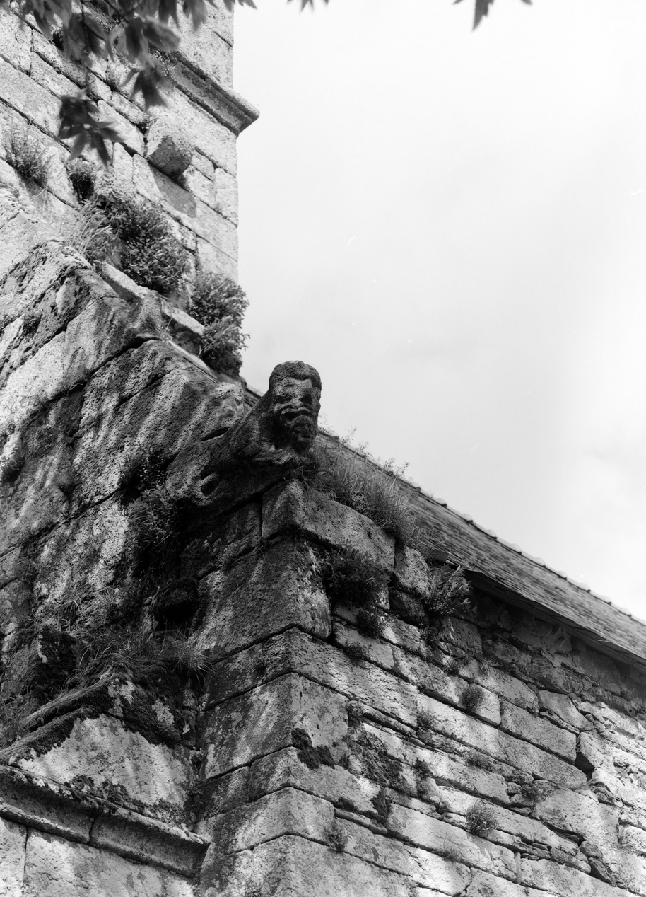 Façade ouest, crossette figurée au rampant sudImmatriculation