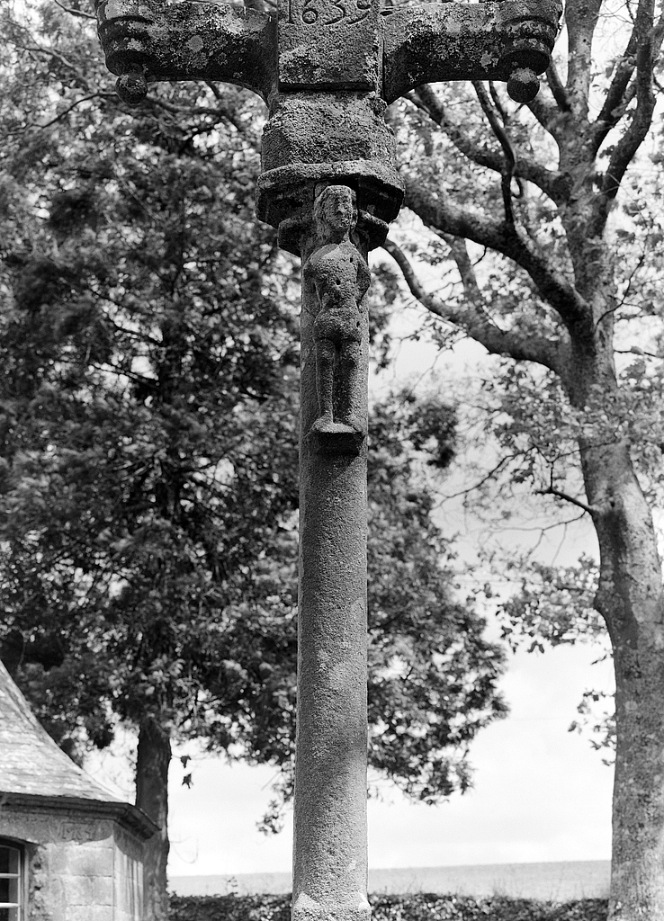 Croix, face ouest, détail du fût.Immatriculation