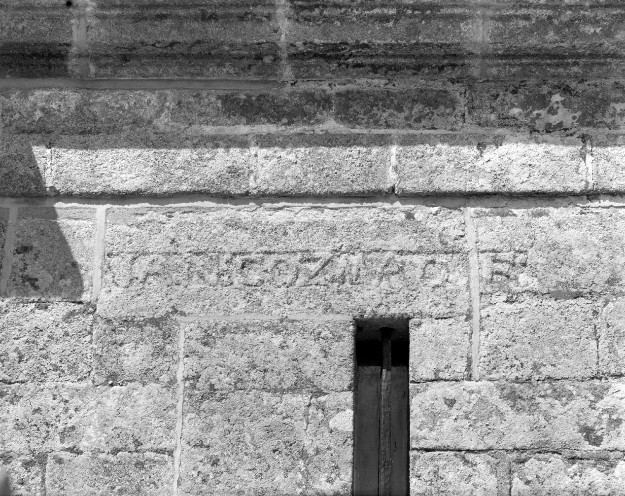 Façade sud, côté ouest, inscriptionImmatriculation