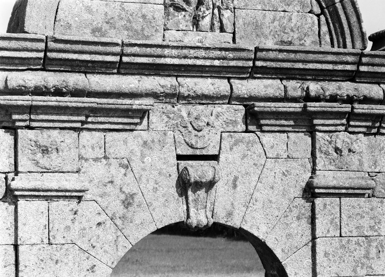 Détail clé de l'arc et corniche sur la face ouest du portail estImmatriculation