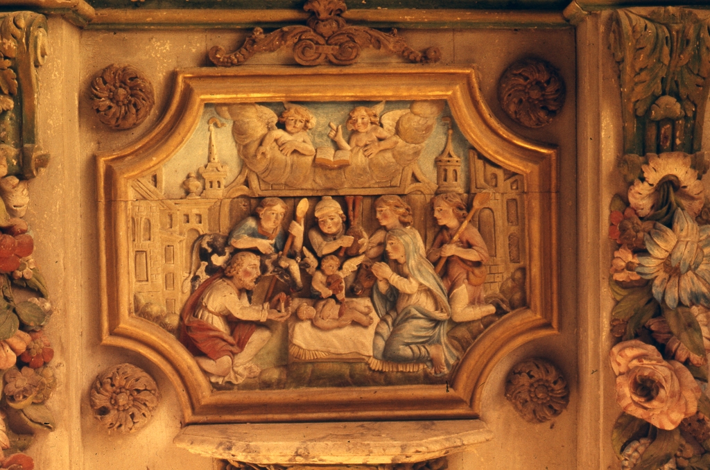 Partie inférieure de l'aile droite : l'Adoration des bergers.Immatriculation