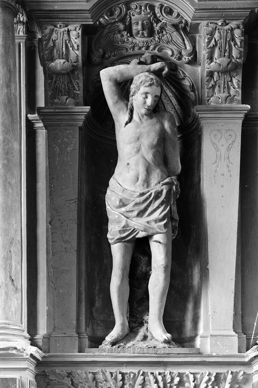 Statue de saint Sébastien, église paroissiale Saint-Pierre (Dompierre-du-Chemin fusionnée en Luitré-Dompierre en 2019),