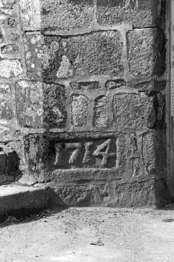 Escalier sud-est, pierre datée 1714.Immatriculation