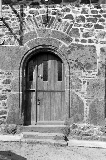 Courgoulu - Maison 1, façade antérieure, vue de détail de la porte.Immatriculation