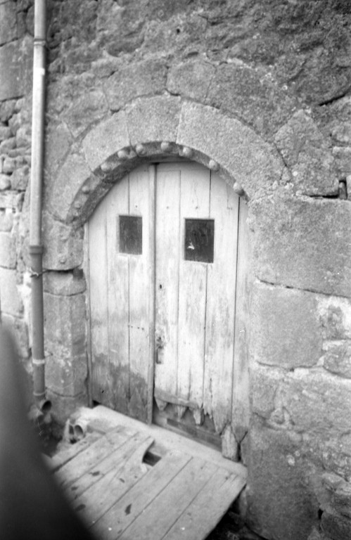 Logis bas. Porte d'entrée à double cintre, moulure en cavet et décor de boules. Etat en 1972Immatriculation