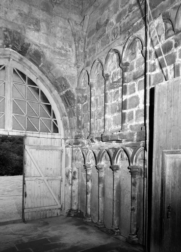 Porche de la tour occidentale : arcatures du mur nord prises du sud-estImmatriculation