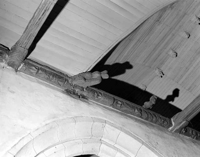 Décor de charpente : 18 sablières, 8 blochets, 6 poinçons et entraits,