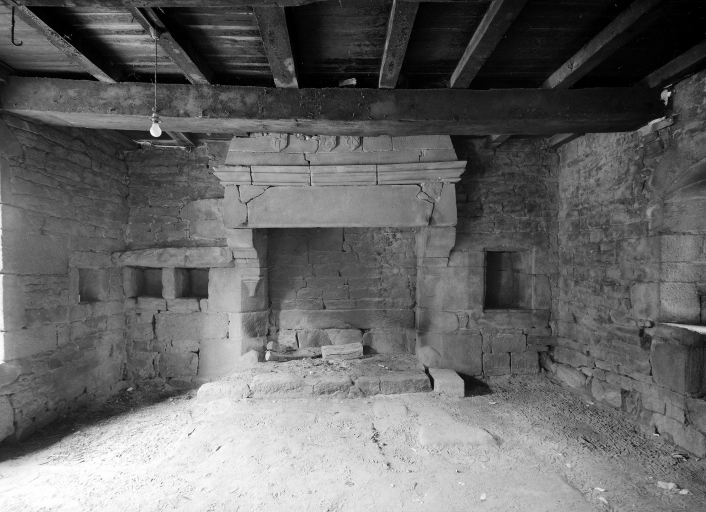 Logis : salle du rez-de-chaussée, cheminée (état en 1973)Immatriculation