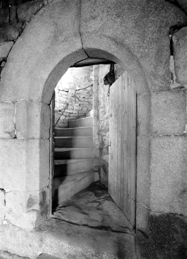 Logis : salle du rez-de-chaussée, porte de l'escalier (état en 1973)Immatriculation