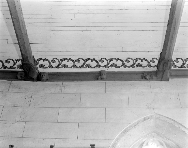 Décor de charpente : 9 sablières, 7 blochets, 1 poinçon et 4 entraits,