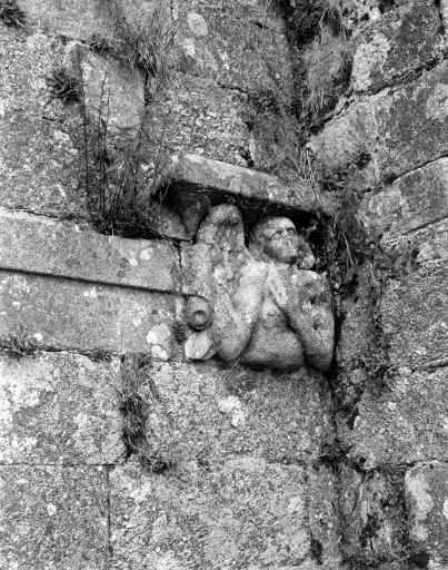 Tour du clocher, face sud, détail de la figure sculptée dans l'angle du collatéral sudImmatriculation