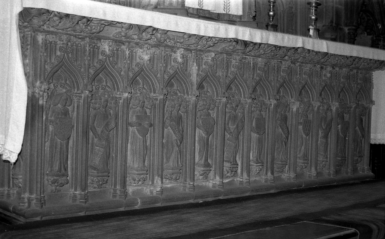 Minihy-Tréguier, rue de l'Église : église Saint-Yves, détail du maitre-autel de Claude-Joseph Lageat réalisé par Jean Larchantec de Morlaix en 1872Immatriculation