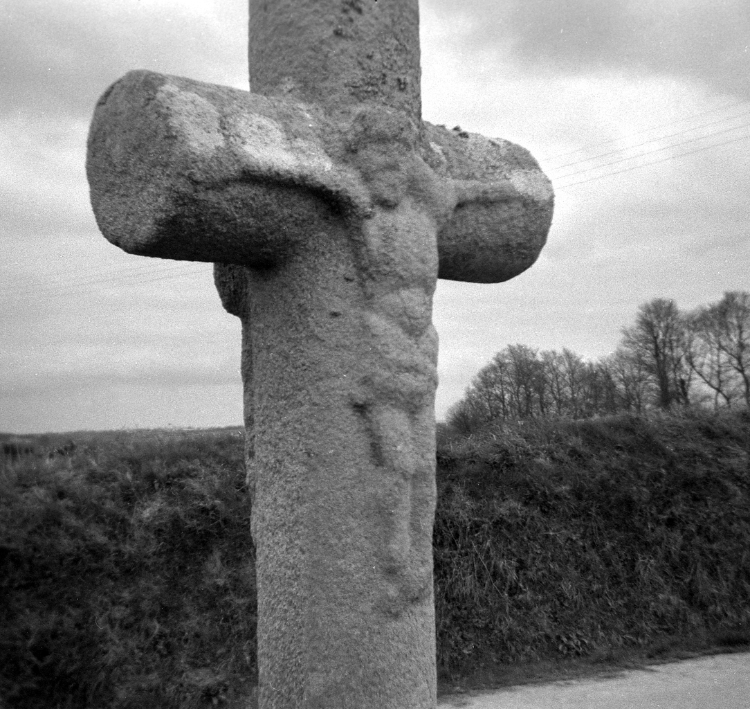 Minihy-Tréguier : croix ar Varquez, face ouest-sud-ouest, Christ en croix, photographie de 1973Immatriculation
