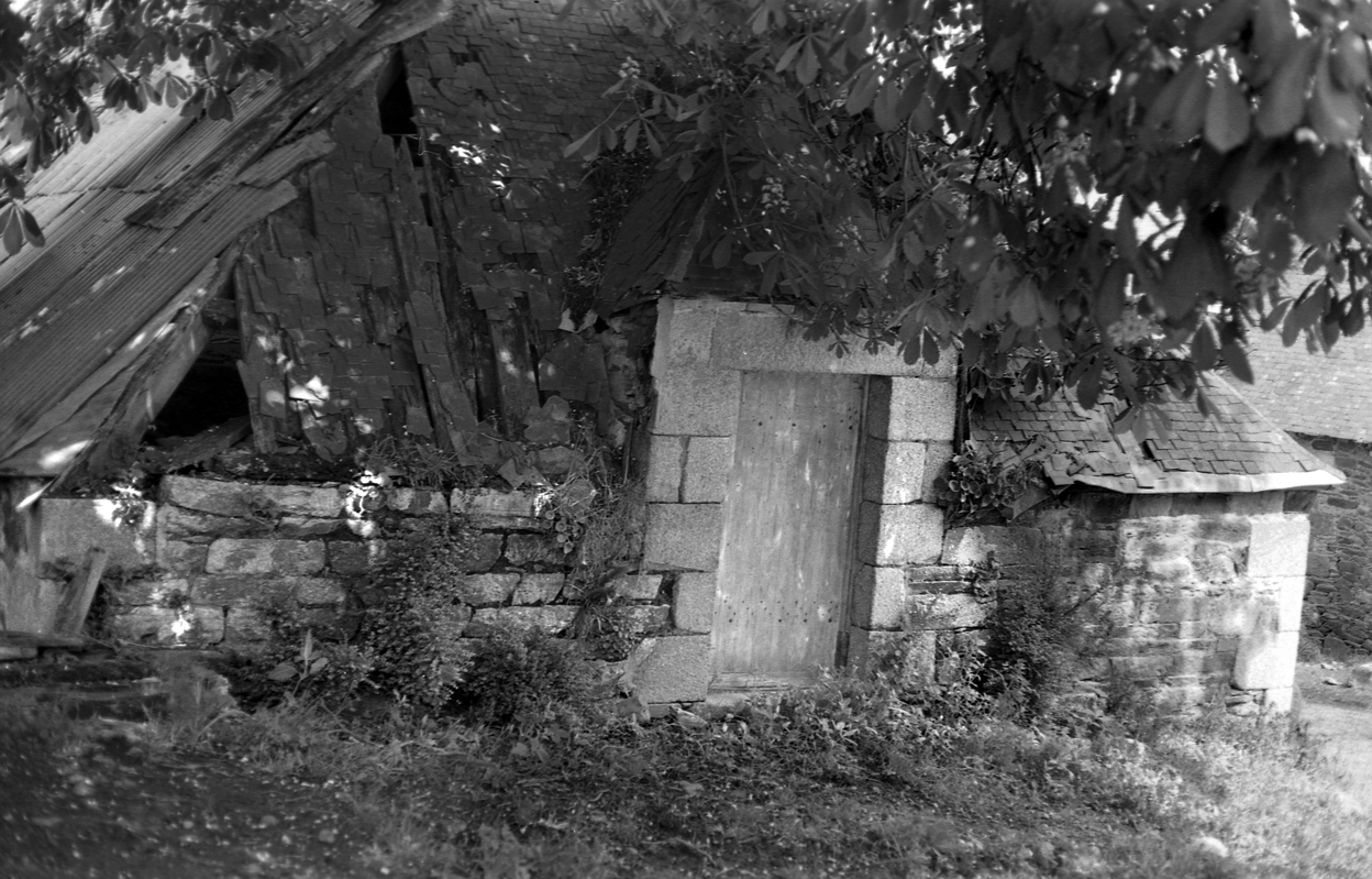 Minihy-Tréguier, le Pont Neuf : ancien moulin, pignon sud-ouest, détail de la porte, photographie de 1973Immatriculation