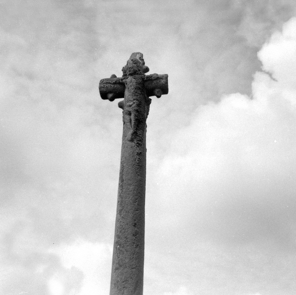 Minihy-Tréguier, Kerfollic : croix dite Croaz Ru, face est-nord-est, Christ en croix, photographie de 1973Immatriculation