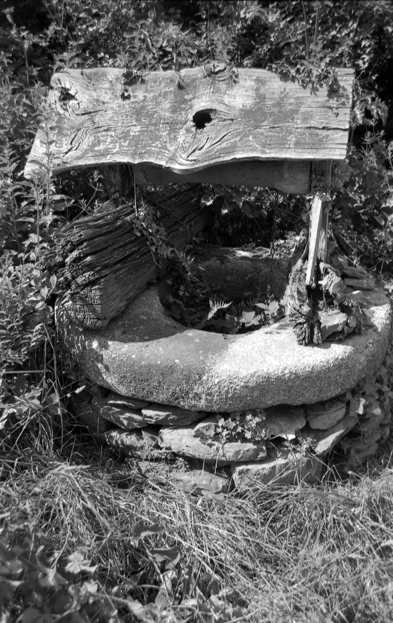 Vue du puits à margelle circulaire et son treuil, photographie de 1973Immatriculation