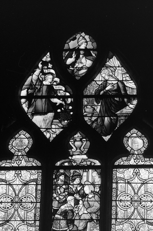 Baie 3 : l'Annonciation, l'Adoration des Mages, la Circoncision et Dieu le Père, église paroissiale Saint-Martin (Javené),