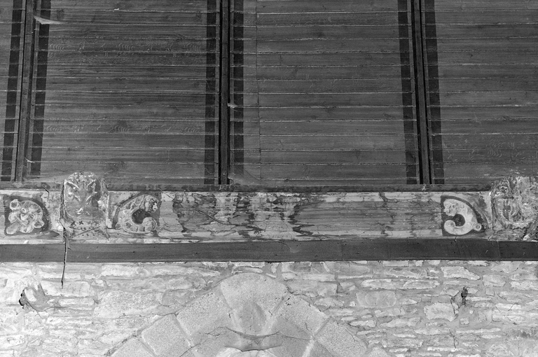 Mur sud du choeur, sablières, vue générale.Immatriculation