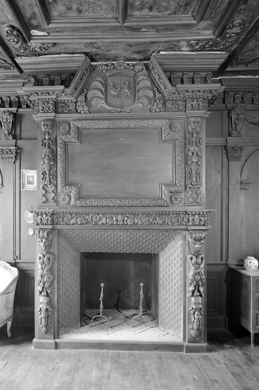 Lambris de cheminée du salon, vue générale.Immatriculation