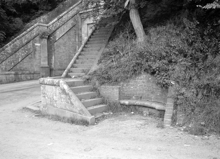 Enceinte de ville - Mur d'enceinte, porte Vauban, détail du banc et départ de l'escalierImmatriculation
