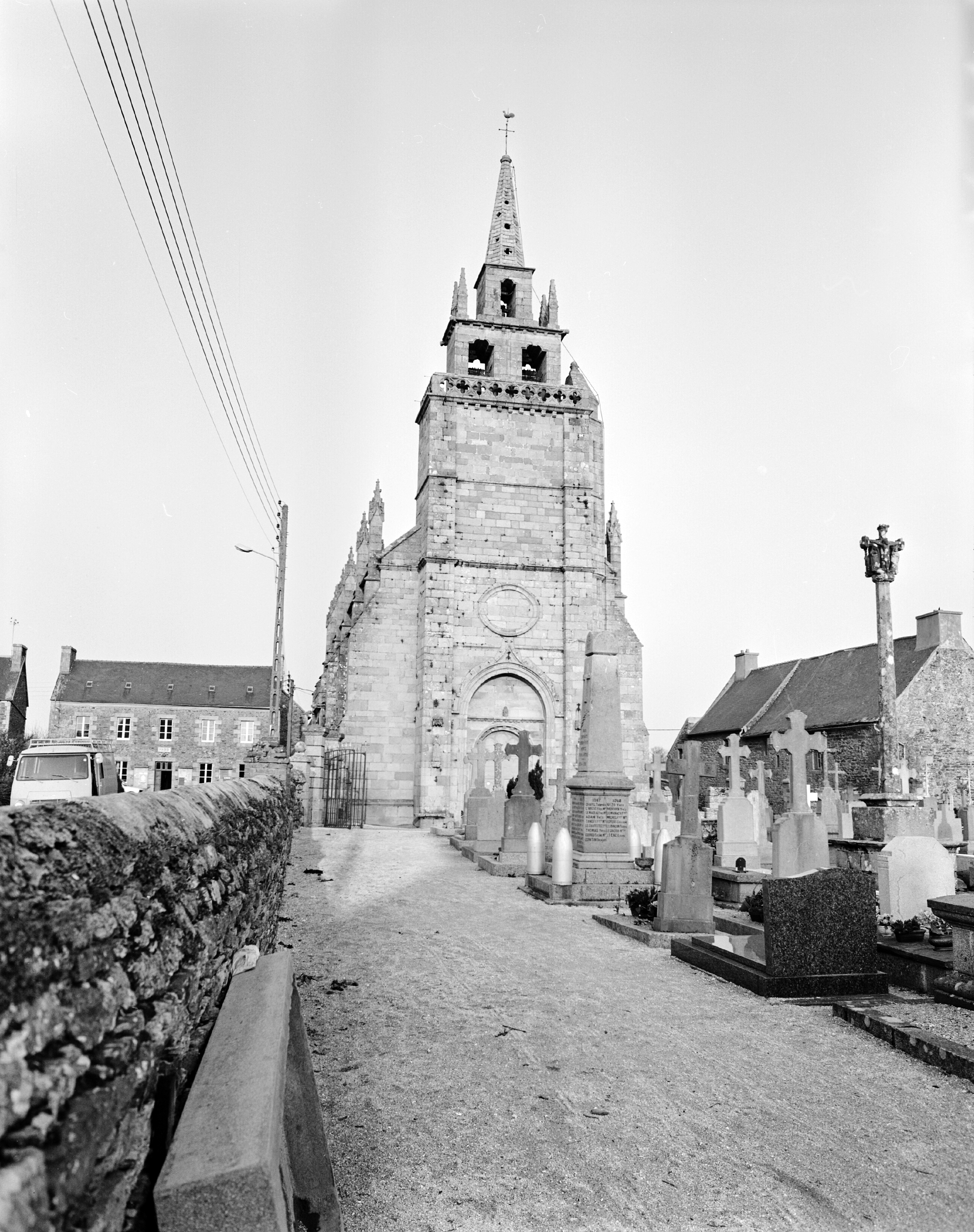 Minihy-Tréguier, rue de l'Église : presbytère et église Saint-Yves, entrée ouest de bourg, photographie de 1974Immatriculation
