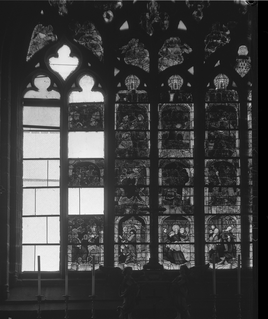 Verrière (coffre bombé, anciennement coffre numéro 1) : vie du Christ, église paroissiale Saint-Ronan (Locronan),
