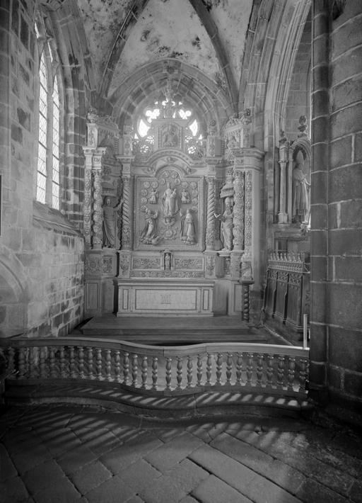 Retable, tabernacle, gradin d'autel (retable architecturé) : la Donation du rosaire, église paroissiale Saint-Ronan (Locronan),
