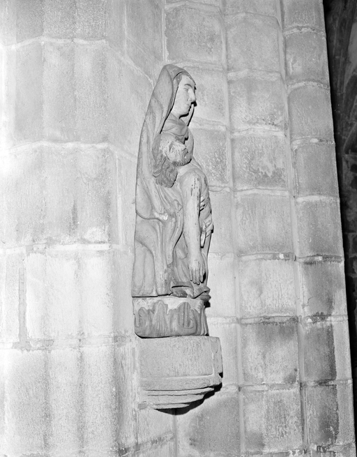 Groupe sculpté (petite nature, d'applique) : Vierge de Pitié, église paroissiale Saint-Ronan (Locronan),