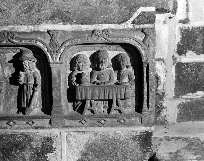 Haut-relief : Apparition à Madeleine, pèlerins d'Emmaüs, église paroissiale Saint-Ronan (Locronan),