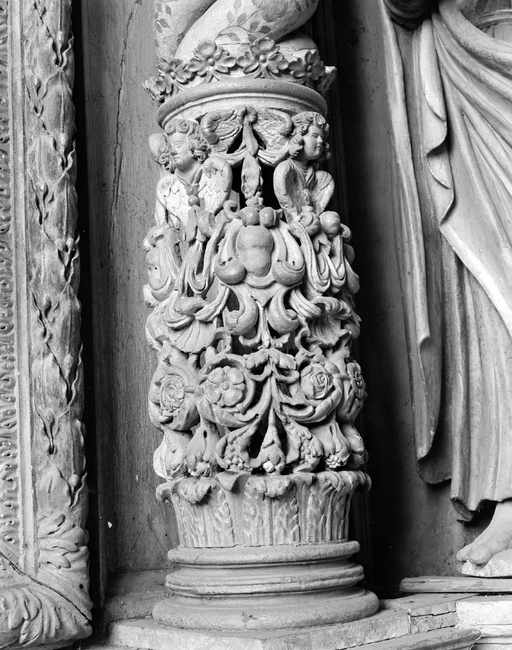 Retable, tabernacle, gradin d'autel (retable architecturé) : la Donation du rosaire, église paroissiale Saint-Ronan (Locronan),