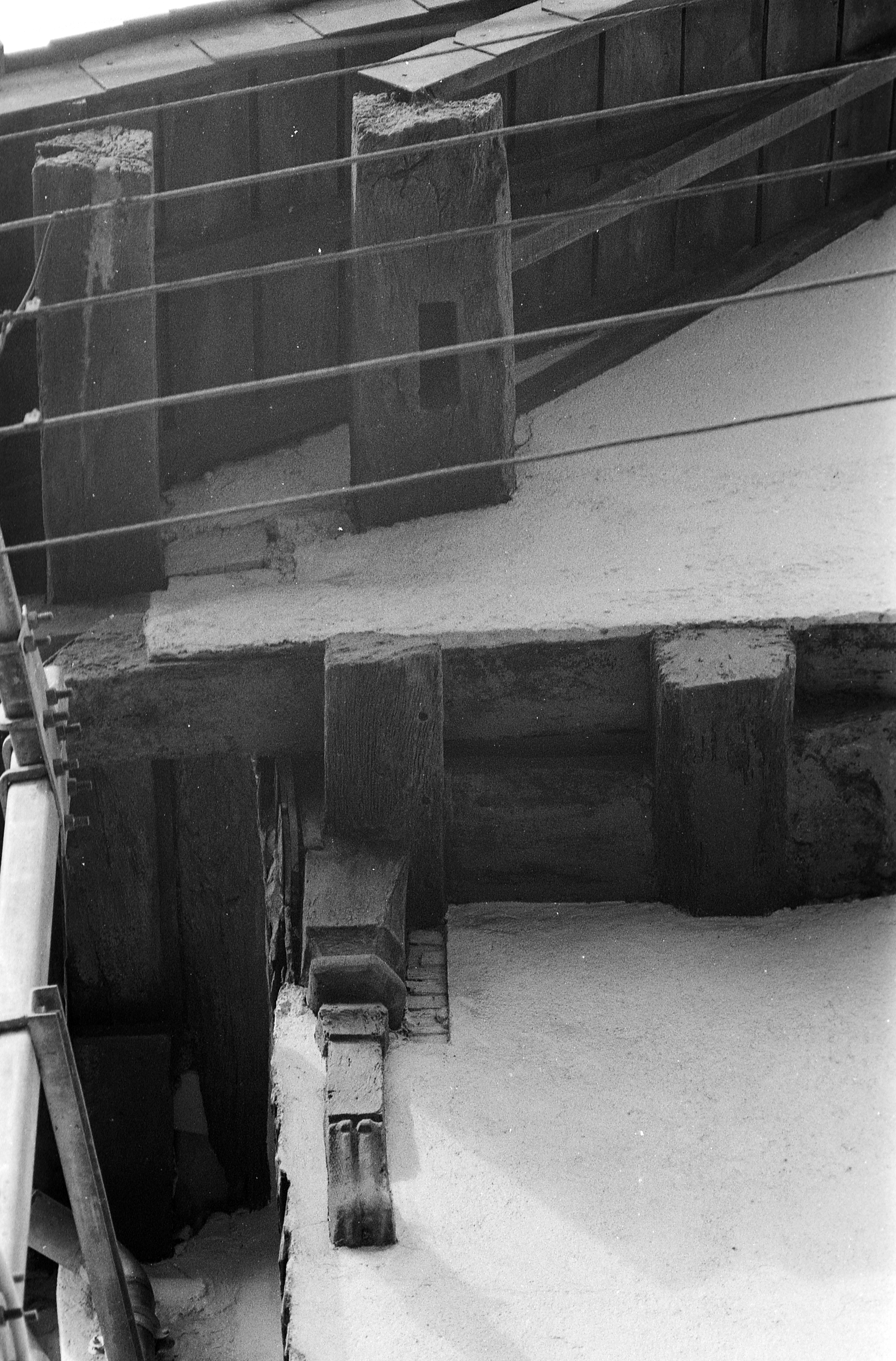 Détail de l'encorbellement au troisième étage, console et mortaise orpheline, état en 1974Immatriculation
