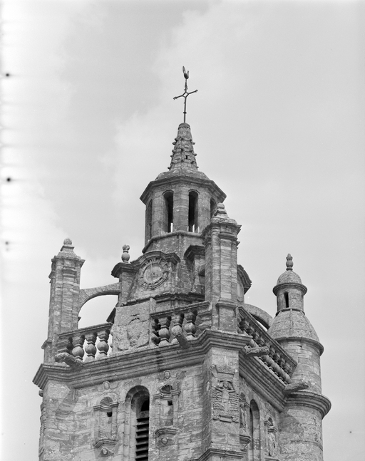 Face ouest, tour ouest, haut : détail de balustrade et écuImmatriculation