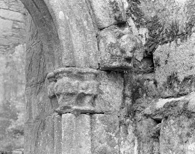 Nef, élévation sud, détail de la porte : retombées de l'arc et de l'archivolte du piédroit droitImmatriculation