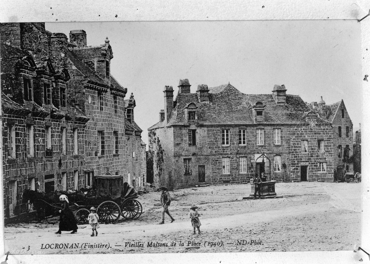 Reproduction de carte postale ancienne - 3 Locronan (Finistère). - Vieilles maisons de la Place (1750).Immatriculation
