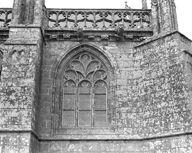 Façade sud, détail de la fenêtre du choeur, troisième travée.Immatriculation