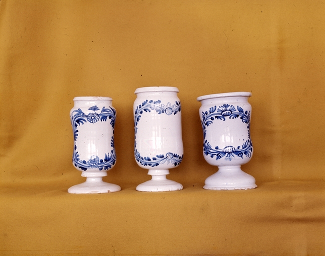 Collection de 199 pots à pharmacie - Trois pots en faïence à décor bleueImmatriculation