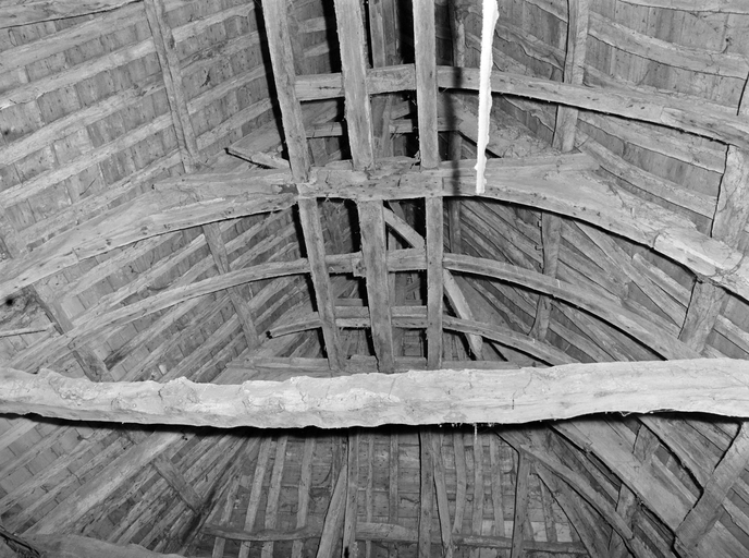 Partie centrale du logis : charpente (prise de dessous)Immatriculation