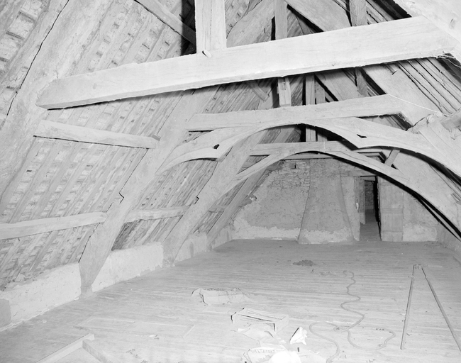 Logis, combles, partie centrale de la charpente. Etat en 1977.Immatriculation