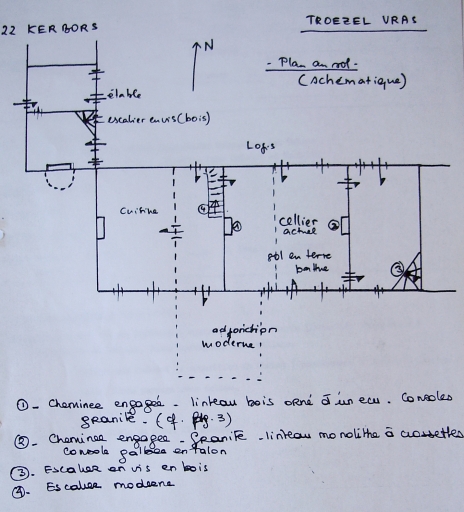 Plan au sol du manoir d'après croquis (pré-inventaire, avril 1977)Immatriculation