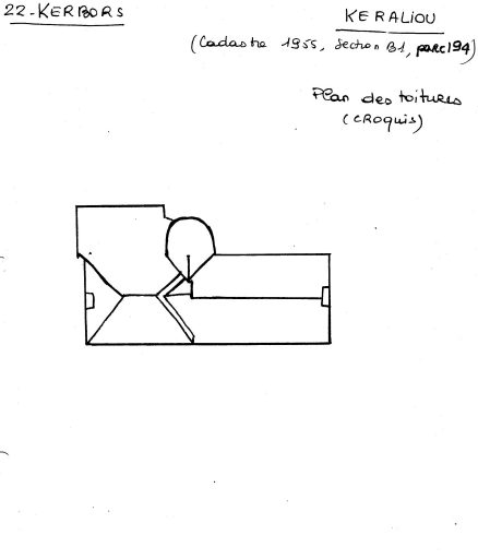 Plan de la toiture du manoir de Keraliou d'après croquis (pré-inventaire, avril 1977)Immatriculation