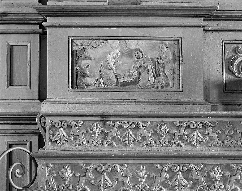 Autel, retable, tabernacle, gradins d'autel (2) (maître-autel, retable architecturé, retable à panneau compartimenté, chapelle Notre-Dame-de-Bon-Voyage ou Notre-Dame-de-Bon-Port (Plogoff),