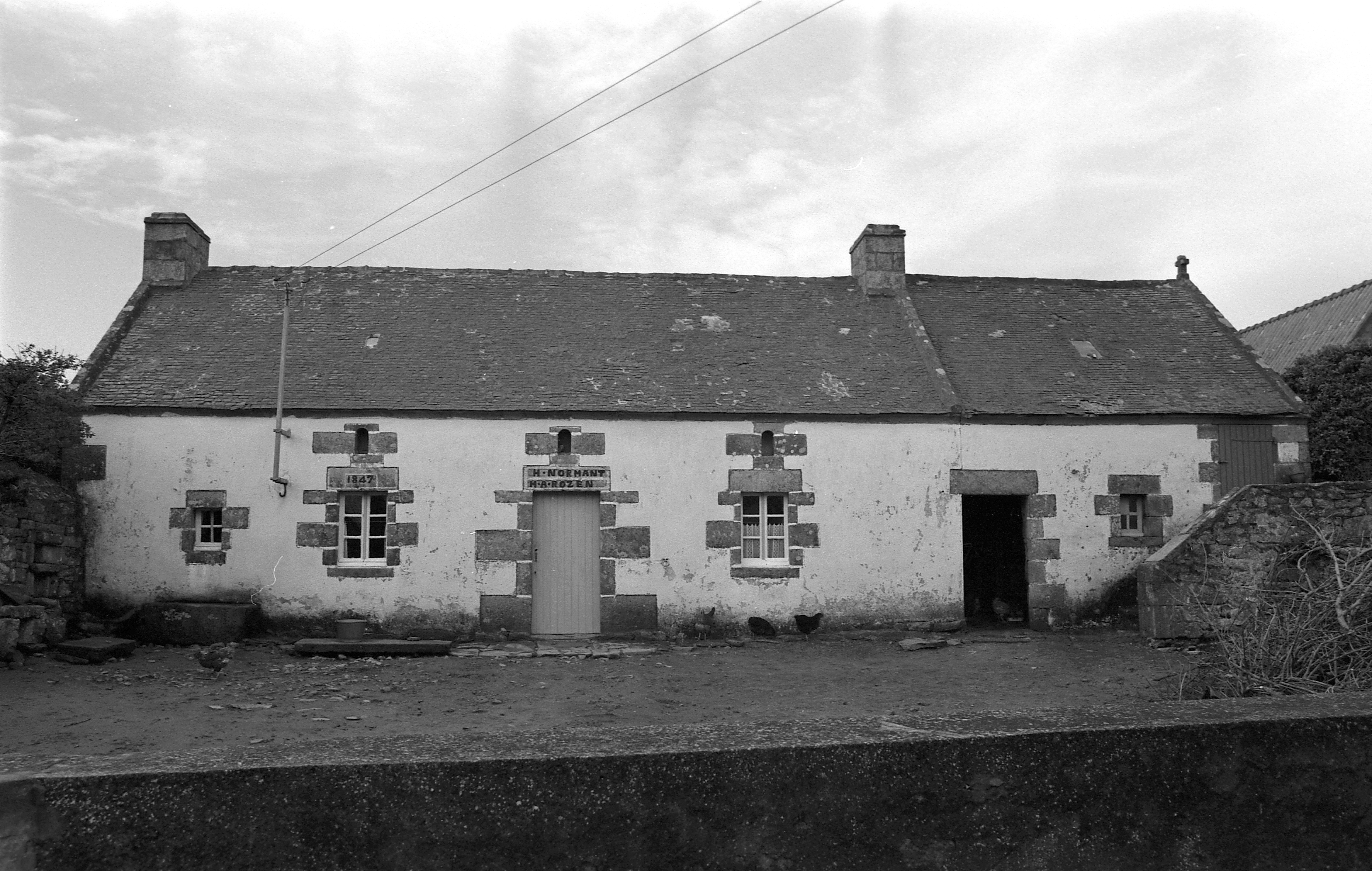 Elévation antérieure de l'alignement principal : logis daté 1847 et crèche accolée. (1977)Immatriculation