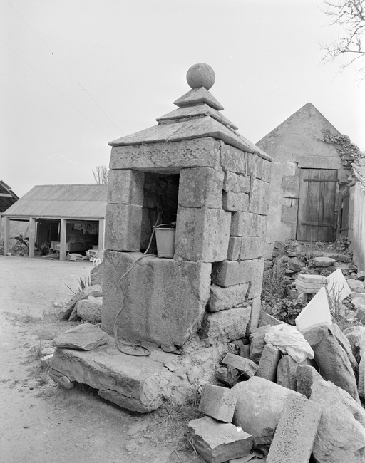 Trouzent, ferme, puits daté 1838 devant l'habitation. (1977)Immatriculation