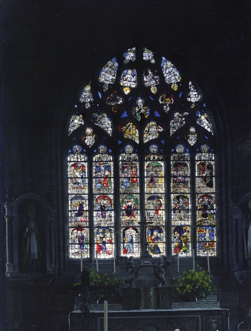 Verrière (coffre bombé, anciennement coffre numéro 1) : vie du Christ, église paroissiale Saint-Ronan (Locronan),