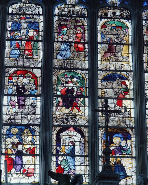 Verrière (coffre bombé, anciennement coffre numéro 1) : vie du Christ, église paroissiale Saint-Ronan (Locronan),