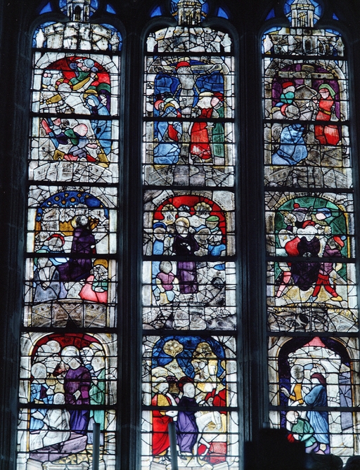 Verrière (coffre bombé, anciennement coffre numéro 1) : vie du Christ, église paroissiale Saint-Ronan (Locronan),