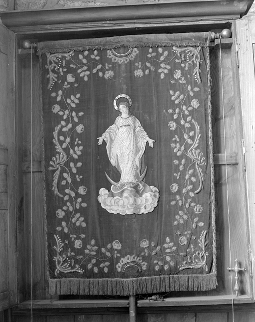 Bannière de procession : Immaculée Conception, Christ en croix et Marie-Madeleine (Tremblay fusionnée en Val-Couesnon en 2019),