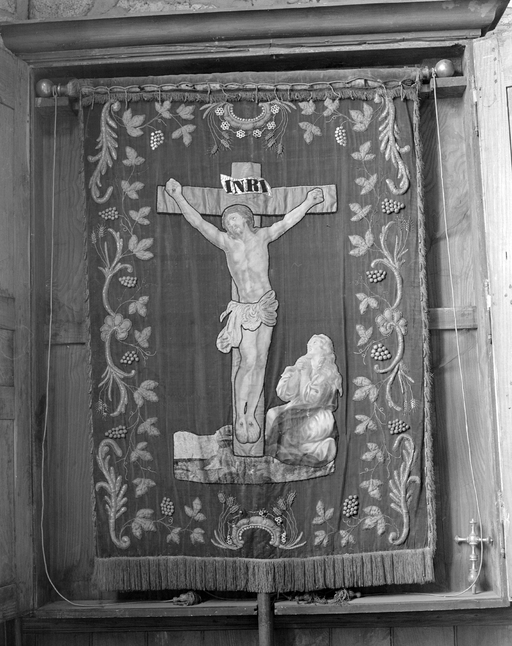 Bannière de procession : Immaculée Conception, Christ en croix et Marie-Madeleine (Tremblay fusionnée en Val-Couesnon en 2019),