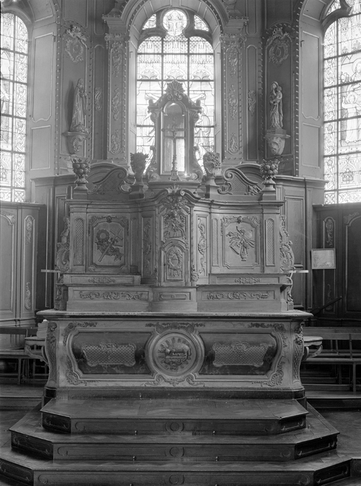 Ensemble du maître-autel : autel, tabernacle, exposition, 2 gradins d'autel, 3 degrés d'autel (Antrain fusionnée en Val-Couesnon en 2019),